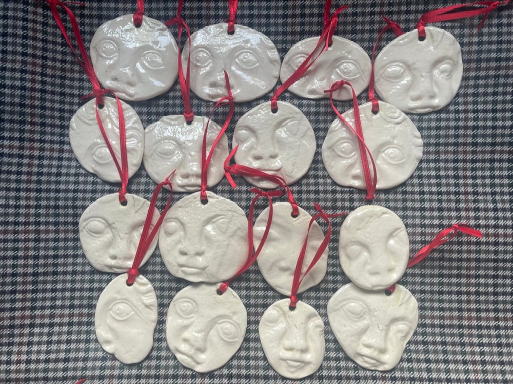 These decorations are made using casts taken from very old graves in Yoxford Suffolk. They are all different so it’s a bit of pot luck as to which one you’ll get. Drop us a line when you order and we can suggest a full face or a pair of eyes !! It’s free postage !!