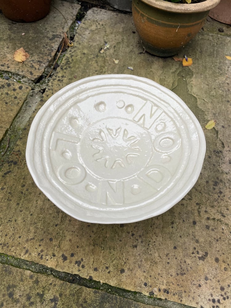 Impression taken from coal hole ( Notting Hill) . White ceramic 23cm diameter and 12cm high.