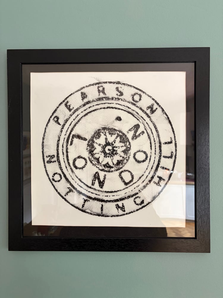 Wax Rubbing taken from a Notting Hill coalhole cover. 40cm x 40cm . Also available unframed fo £55