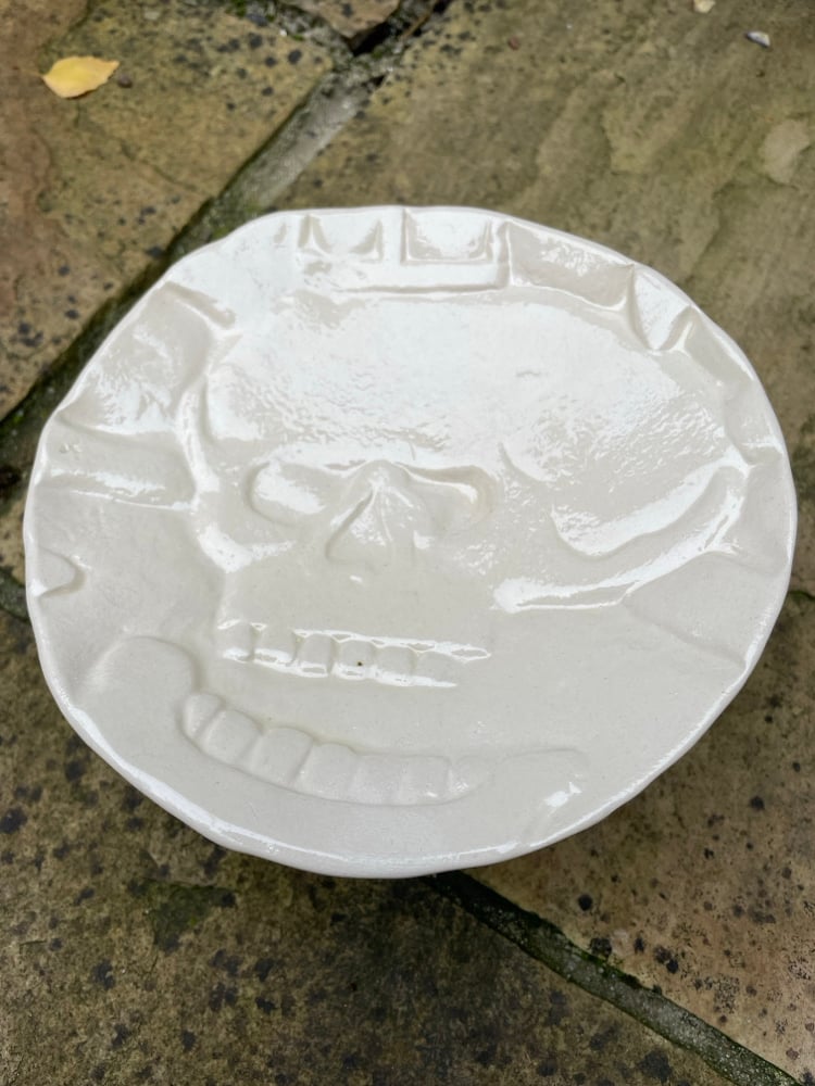 Memento Mori from Westleton. Chalice measures 25cm diameter x 12cm tall. White Ceramic